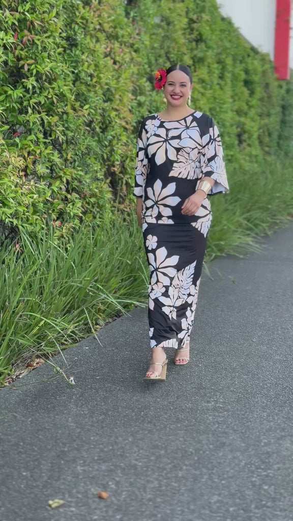 Slip into effortless elegance with the Meilin puletasi. This stunning two-piece set features a relaxed-fit top with wide kimono sleeves and matching skirt—perfect for those days when you want to feel both comfortable and absolutely fabulous!